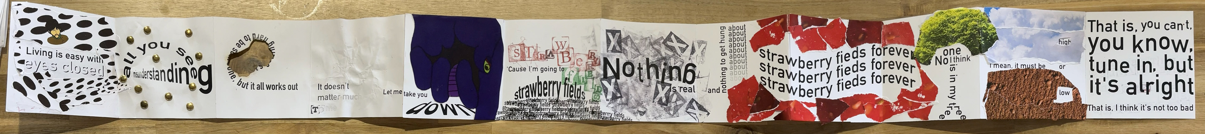 Assignment: Create an accordion booklet which typographically illustrates the lyrics of a song or poem using Adobe Illustrator and mixed media practices