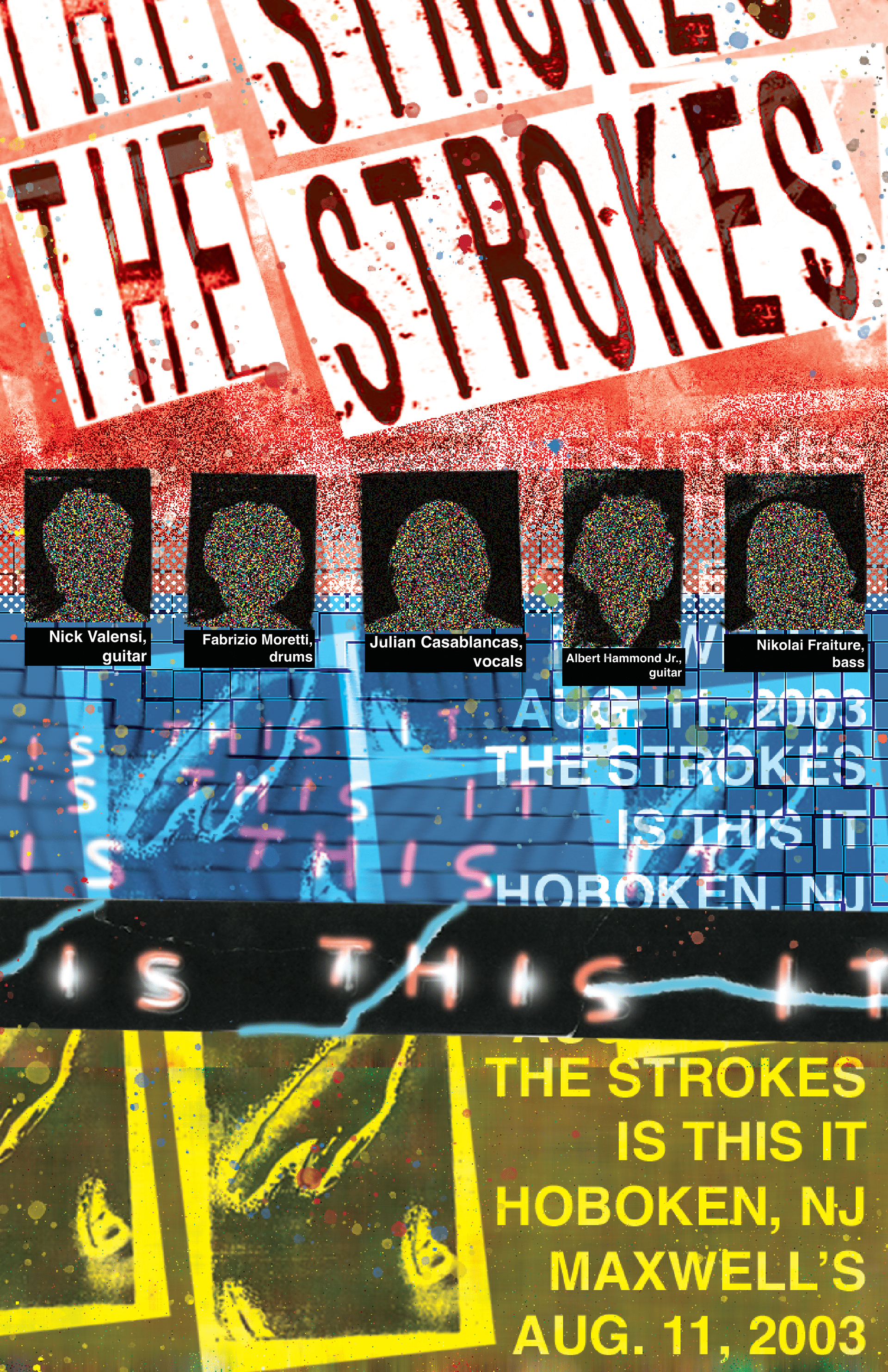 The Strokes are a famous post-punk revivalist band, whose start originates in the early 2000s New York City rock scene. This poster draws inspiration from postmodernist punk style. Adobe Photoshop. Adobe Illustrator. Laser cutting and various other manual art techniques.